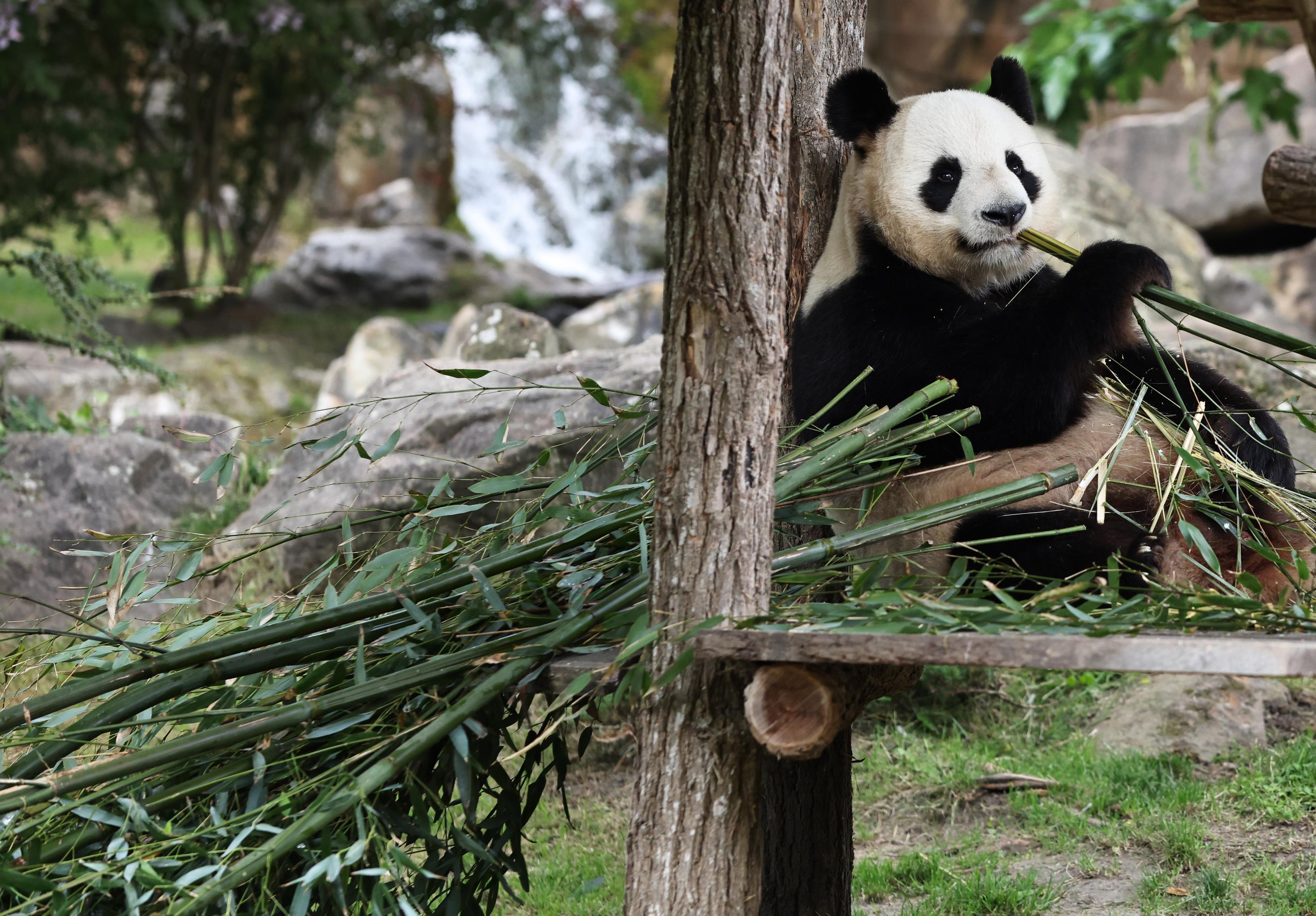 在法国中部城市圣艾尼昂的博瓦勒野生动物园拍摄的旅法大熊猫“圆仔”。新华社资料图